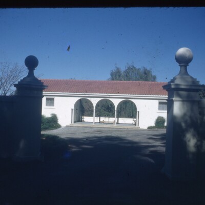 - Quince (Chaenomeles sp.) against exterior pool house walls on courtyard side. Orange blossoms in late winter and into spring. Planted by Alice Callaway.