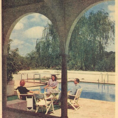 Fuller worked with R. E. Landon, Contractor at Paddock Engineering Company of Dallas, TX, to create a plan for a 22’ x 60’ Indiana Limestone swimming pool that was 3’ to 9’ deep with a springboard, submarine lights, filtration system, chlorinator, and vacuum cleaner. From the time it was built, the pool became a popular place for summertime family gatherings and parties.