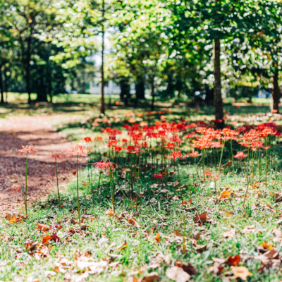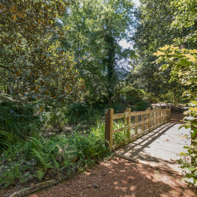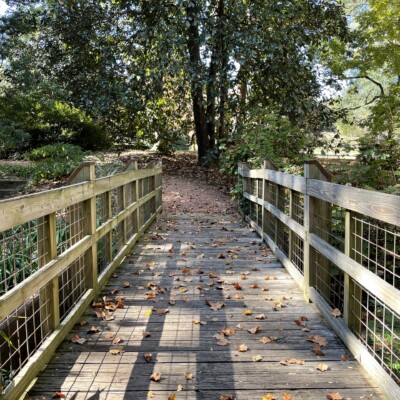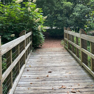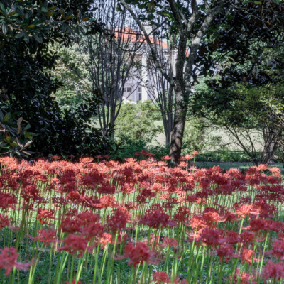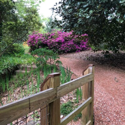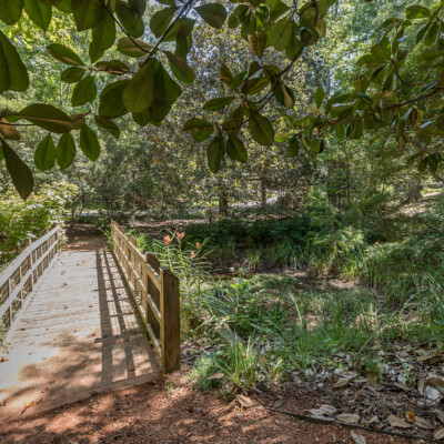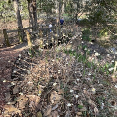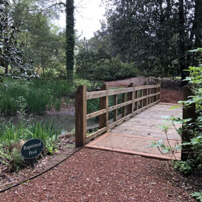 Before you reach the front gate you will see a grove of large tulip poplars. This grove was planted during Ida’s years. During September, a highlight within the grove is the large mass of red spider lilies. Along the walking path between the grove and the Visitor Center, visitors can see the Baptismal Pool. We believe Fuller Sr. and Ida added the Baptismal Pool.