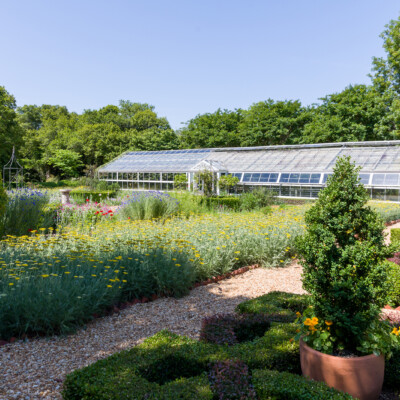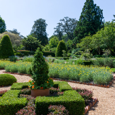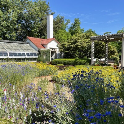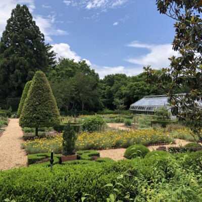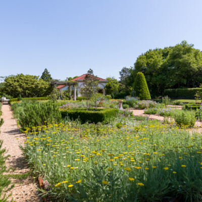 The Herb Garden sits on the site of Ida Callaway’s rose garden. Alice implemented this change in the 1960s and the present design is loosely based on one created by Rosemary Louden, a noted designer of herb gardens and a lecturer on cooking with herbs, in the early 1980s. It contains a wide variety of culinary, medicinal, and aromatic herbs, such as rosemary, lavender, lemon balm, mint, costmary, parsley, and oregano. In late spring and early summer, beds of ‘Coronation Gold’ yarrow bloom profusely. Alice sometimes harvested the chives and spearmint in her garden, but she often told people that she mostly just enjoyed watching the herbs grow.