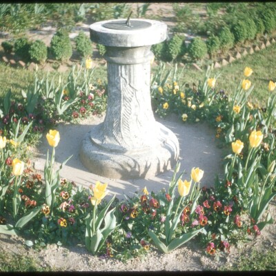 - Fernleaf yarrow (Achillea ‘Coronation Gold’) in four large beds on north and south sides of Herb Garden. Blooms yellow in May. Planted by Alice Callaway.
