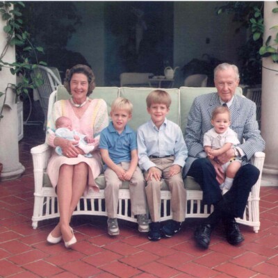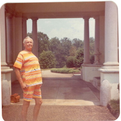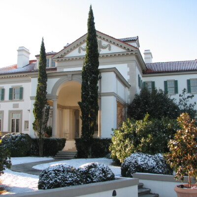 - American wisteria (Wisteria frutescens) on the column by the above magnolia. Blooms purple in the spring. Planted by Alice Hand Callaway.