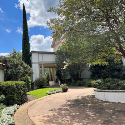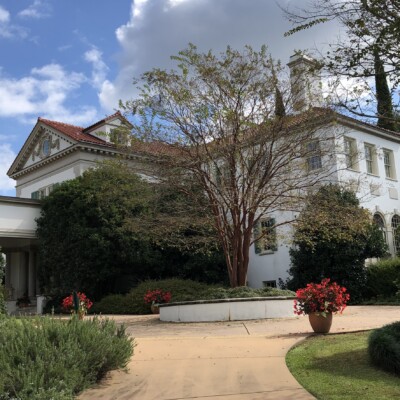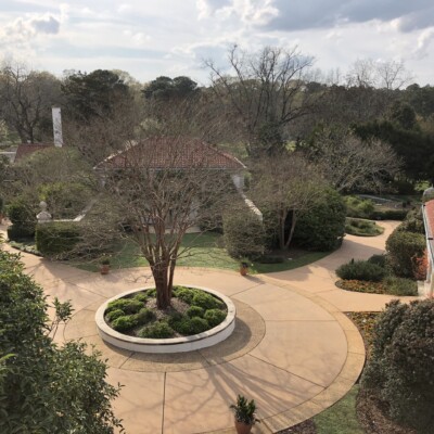 The Courtyard between the Porte Cochere and the bathhouse served as a parking area for family guests when Hills & Dales was a private residence. In conjunction with opening the estate to the public in 2004, this area was given a modest facelift: a circular bed was added in the center and concrete with exposed aggregate replaced the original asphalt. At this time, the multitrunked ‘Natchez’ crape myrtle was added in the circular bed to soften the courtyard and provide shade and seating for what is now a plaza for pedestrian traffic only. During the Callaway family years and for guests today, the courtyard provides a lovely connection to the bathhouse, garage, and the rolling “hills and dales” terrain of the estate.