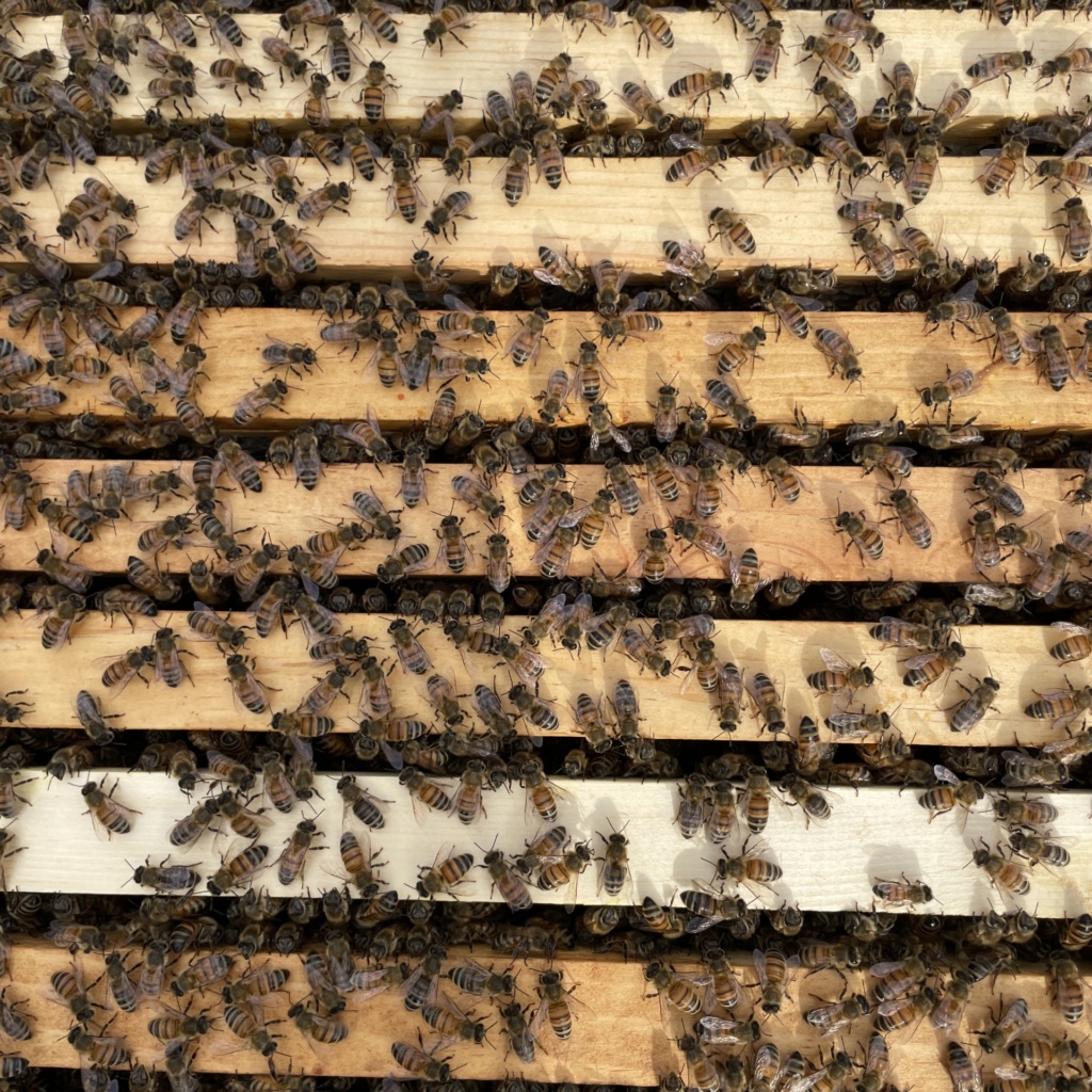 It’s easy to catch their fervor when the trio talks about queens, worker bees, and drones. They know all about their habits, behavior, and biology and use this knowledge to achieve healthier hives and produce more honey. Discussions revolve around adding supers and managing frames to create the ideal habitat, and at least once a week, one of them dons a beekeeping suit and veil to make sure all is well. They survey the hive, check the status of the queen, adjust the frames, expand or reduce the size of the colony, and inspect for the dreaded varroa mites.