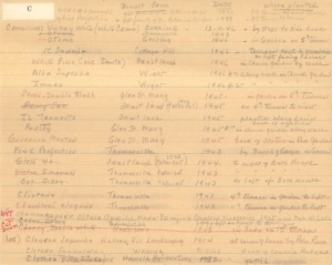 After reflecting on those memories, a daunting task lay before me as I combed through the Estate’s documents to identify camellias in the current landscape and those that may have been lost. The following is what I found. Our records indicate that Sarah Ferrell began gardening at Ferrell Gardens, what we now call Hills & Dales Estate, 183 years ago in 1841. While we do not have many records from Mrs. Ferrell indicating the specifics of what she planted, her garden was often written about by others. One such article mentions spring blooming camellias, so we can presume that she did in fact have camellias. We have more records from Ida Callaway’s time at Hills & Dales Estate, although they are sparse. Through my digging, I found a document in her garden records listing numerous different “Japonicas” (Camellia japonica) including – ‘Alba Plena,’ ‘Candidissima,’ ‘Coletti Maculata,’ ‘Donckelari,’ ‘Imbricata,’ ‘Sara Frost,’ ‘Pink Perfection,’ and two others that were unidentifiable. Only one of these cultivars, ‘Pink Perfection,’ is still planted at the estate today. On the other hand, Alice Callaway kept much more extensive gardening records, which include dates, the location of the plant, and often where it was purchased. She also had a large collection of plant books, where she would record specific notes on what she wanted to plant, how the plant was doing, and if the plant had died or was lost.