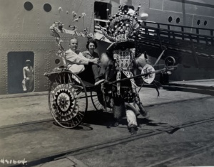During their 1956 world cruise, Fuller Jr. and Alice enjoyed a traditional rickshaw ride in Durban, South Africa. |