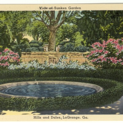 Sarah referred to it as “The Valley”, while the Callaways renamed it the Sunken Garden. Notice the semi-circular stone wall that slave masons erected, as they did most of the stone walls on the property. These walls are more visible than others because they’re not covered with vegetation. According to Alice Callaway, the curved walls flanking the Sunken Garden have had only one extensive repair job since they were built when a stone mason from Columbus, GA, was hired to do the work. Reportedly, when he took the stones out he numbered each one so he could put them back in order.