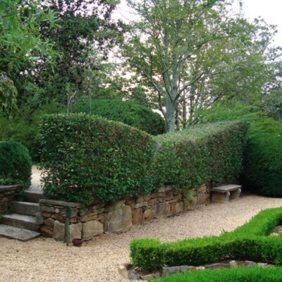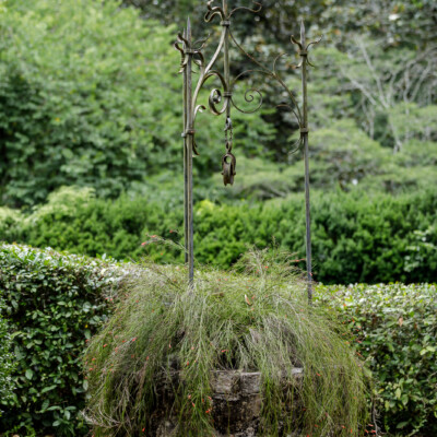 This stone Well marks another location where water was drawn for the garden during the Ferrell era. It features ironwork that was designed for the garden by Neel Reid. Beside the well is a Tea Hedge shaped in a shallow “v”, or chevron. This plant is the source of tea leaves and was first cultivated in this garden by Sarah Ferrell, but this particular hedge was installed by Alice Callaway.